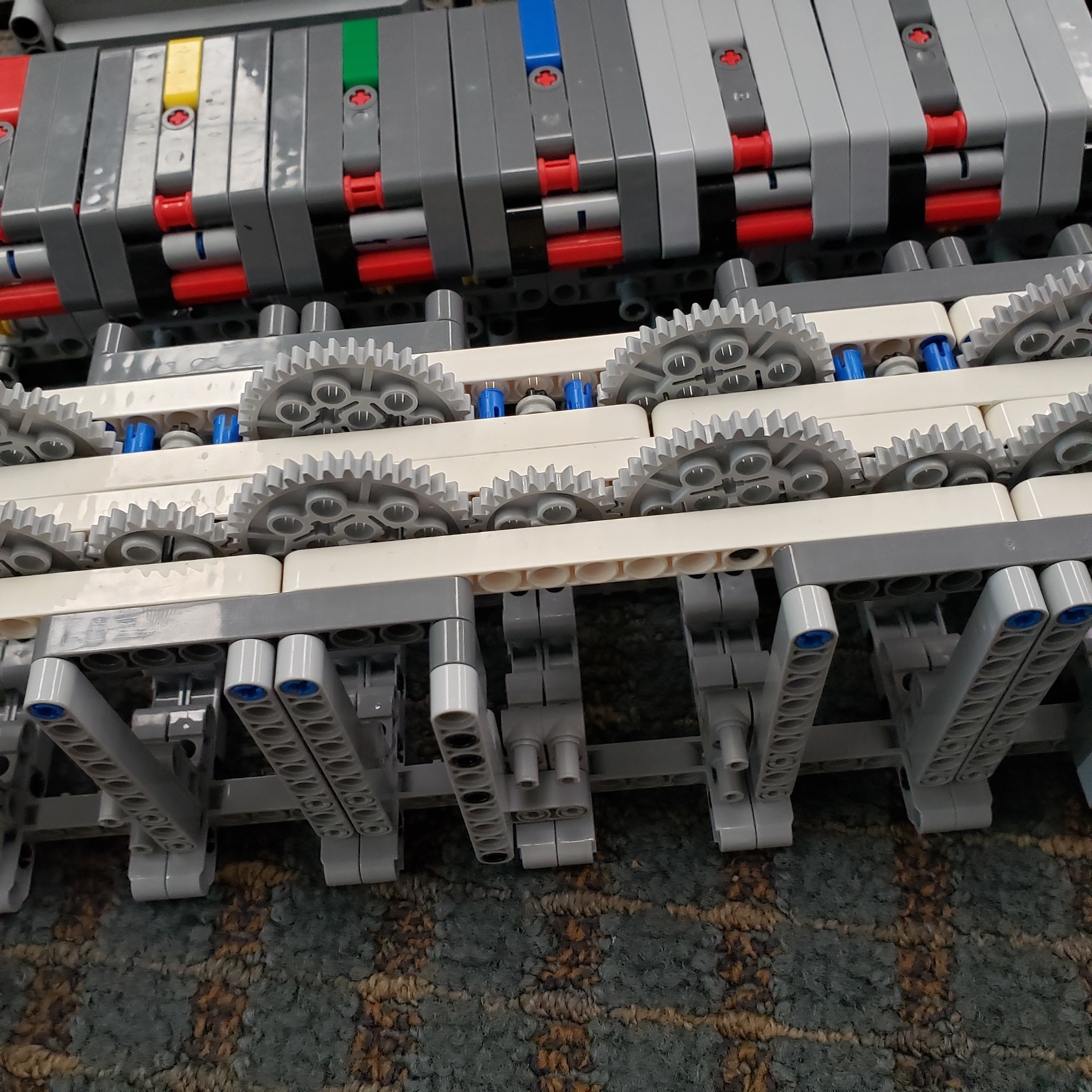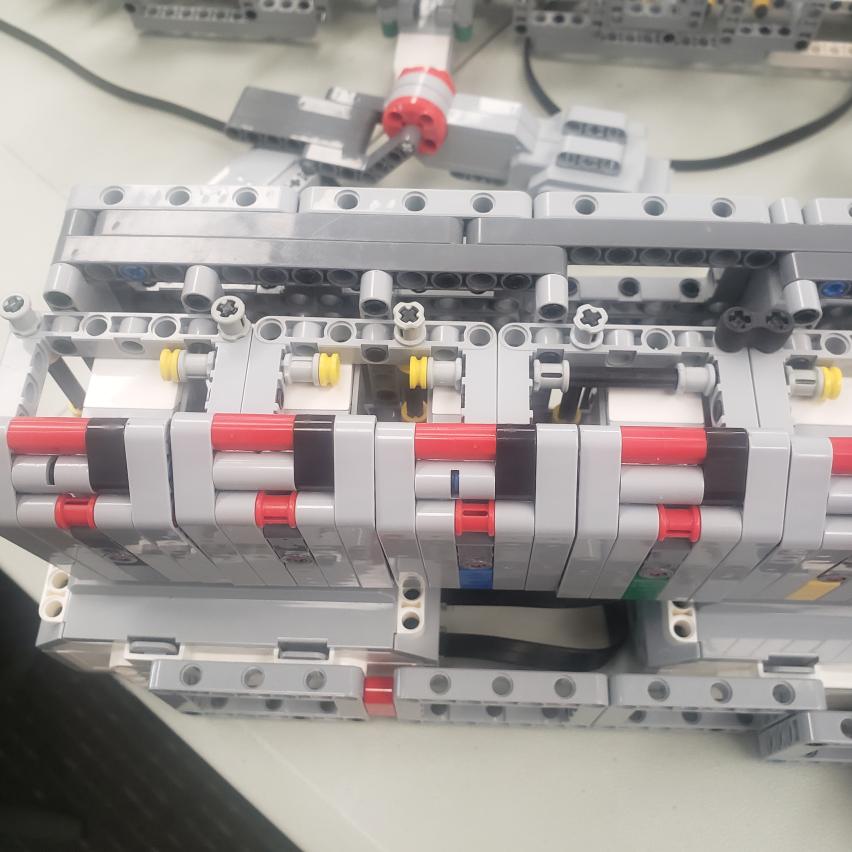 Today, Jinu and I gave a presentation on Tesla Motor Company. We covered the history of electric cars, the history of Tesla, and some popular models. We spent the rest of the day continuing construction with the robot piano. After struggling with the conveyor system for some time, we decided to have walls on the sides of the track instead of on the actual carriage. This way, the track walls wouldn't get stuck on the gears. We also added a partial roof to the track that would just scrape over the top of the carriage, which made skipping practically impossible.