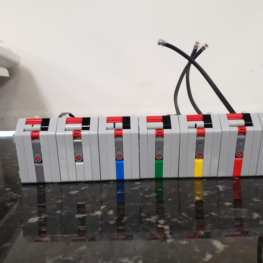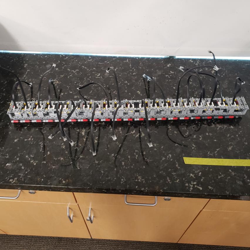 Today, we spent lab working on the new robot piano. We worked mainly on improving its structure, because the piano was flimsy and bent easily when held up. We also began wiring all of the sensors, plugging in four brains to account for all 20 sensors. Connecting the brains to the piano will be challenging, but it should also improve the structure significantly.