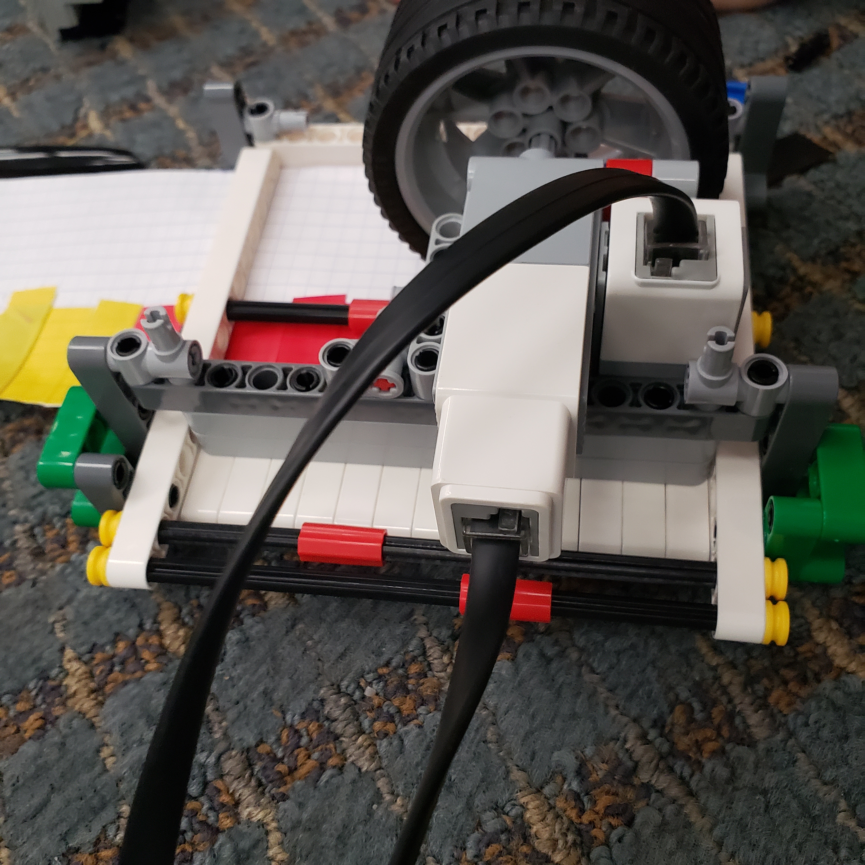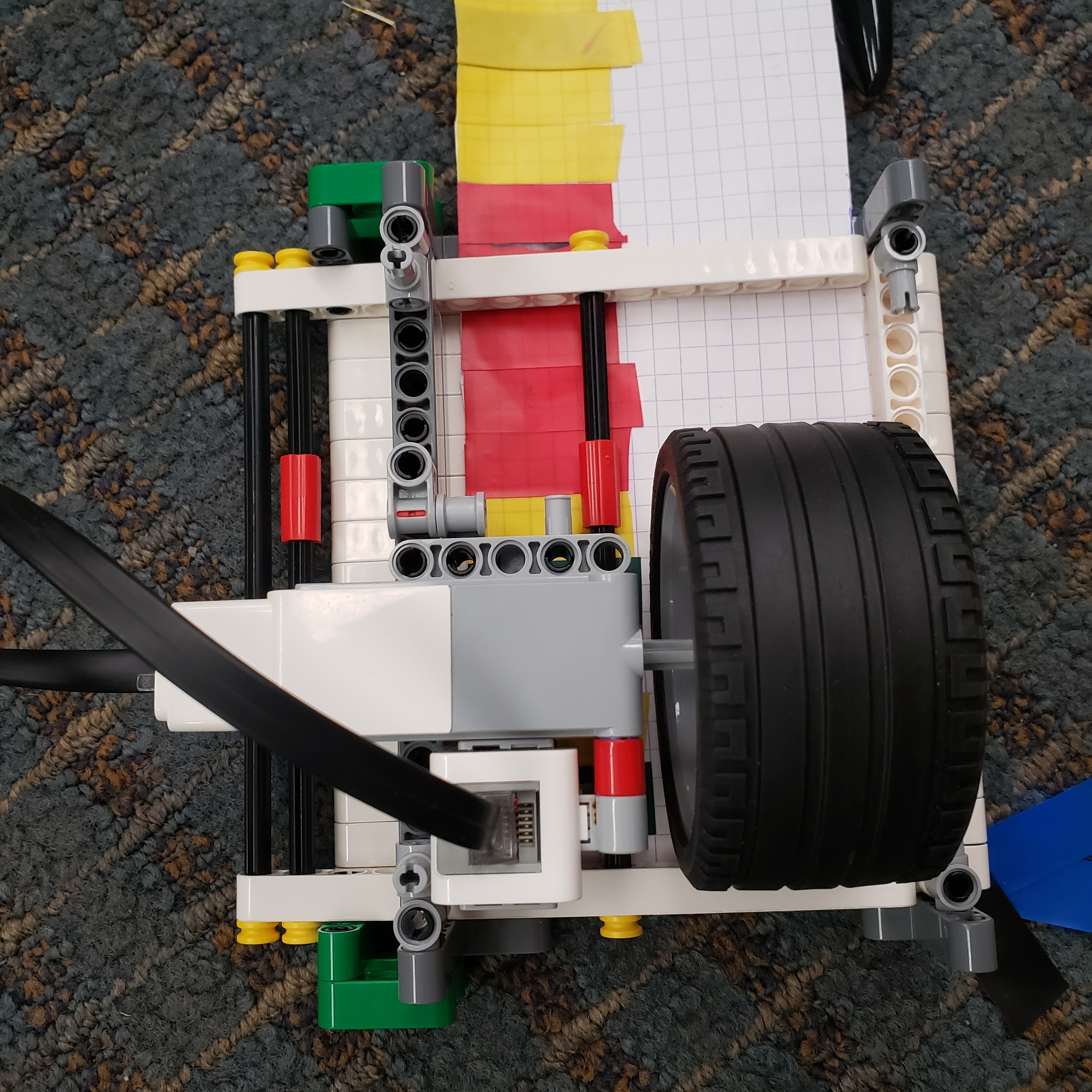 Today, we had another opportunity to continue working through the coding challenges. After struggling through turning in a square accurately, I realized that abstracting everything away made the whole process a lot easier. Suddenly, drawing a capital 'G' only required a few function calls: forward, turn right, forward, turn right, semi-circle clockwise! After that was finished, I built an obstacle course for the robots along with a few other students. So far, I have only managed to complete it when neither Eli nor Dr. Dad-Del were watching, but hopefully I'll be able to get that more consistent on Wednesday.